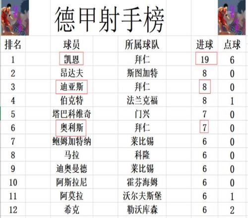 德甲最新积分战报凯恩创纪录拜仁大胜领先多特9分夺半程冠军